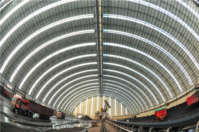 堆场料场封闭式主体结构为新型的钢溧阳网架结构,维修结构为溧阳钢结构溧阳不锈钢板和纤维增强塑料灯具,其外形以溧阳网架式和平板为主,连接柱溧阳施工自由,设置喷雾自动喷水系统,从而可以实现棚内所有物料的覆盖,减少物料在运输过程中的损耗,起到防尘的作用,减少工厂关闭后的二氧化硫排放量,50mg/m3颗粒排放量小于10mg/m3,非常适合低能耗。低闭库自动感应反应对库存轮胎进行清洁,确保轮胎不受道路污染;封闭的储存区可从源头控制粉尘污染,控制无序排放。